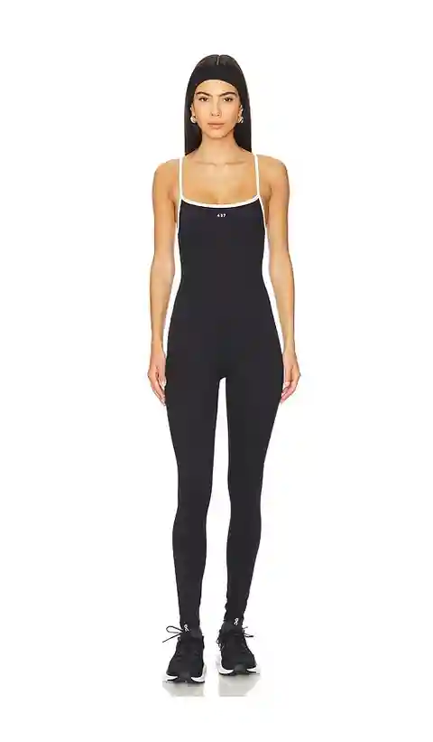 437 The Onesie in Black. - size S (also in L, M, XL, XS) 437 The Onesie in Black. - size S (also in L, M, XL, XS) 82% recycled polyester 18% spandex. Made in China. Machine wash. Pull-on styling. Adjustable shoulder straps. Jersey fabric. 437R-WC1. ACOP1071.