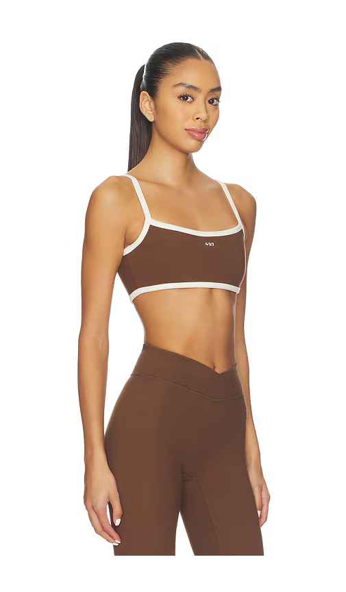 437 The Micro Sports Bra in Brown. - size L (also in M, S, XL, XS) 437 The Micro Sports Bra in Brown. - size L (also in M, S, XL, XS) 82% polyester 18% spandex. Machine wash. Detachable padded cups. 437R-WI20. ACTO1143.