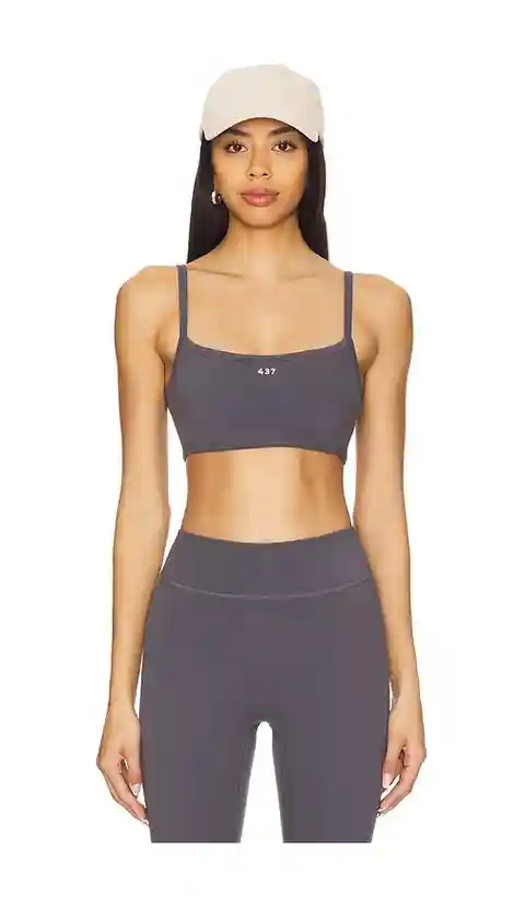 437 The Micro Bra in Grey. - size L (also in M, S, XL, XS) 437 The Micro Bra in Grey. - size L (also in M, S, XL, XS) 82% recycled polyester 18% spandex. Made in China. Machine wash cold. Midweight jersey fabric with removable padding in cups. Scoop neckline. Front logo detail. Item not sold as set....more