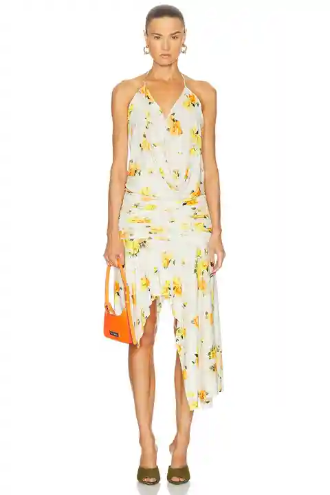 Acne Studios Dikata Dress in Cream,Orange 100% viscose. Made in Portugal. Dry clean only. Partially lined. Pull-on styling. Jersey fabric with ruching detail and asymmetrical hem. ACNE-WD267. A20789. About the designer: Acne Studios is a Stockholm-based fashion house with a multidisciplinary approac...more