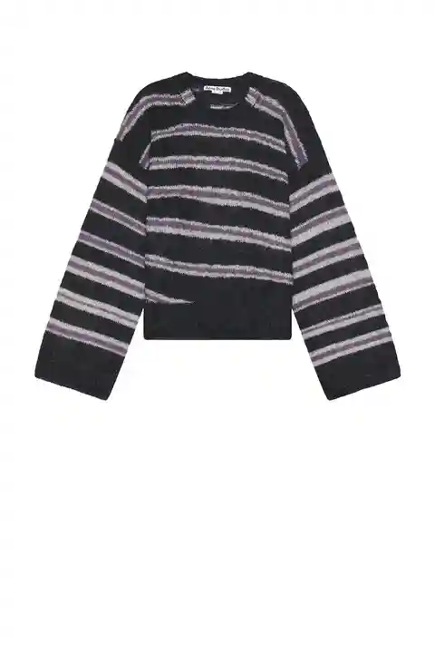 Acne Studios Striped Sweater in Grey 44% nylon 32% wool 24% mohair. Made in China. Hand wash. Fuzzy knit fabric. ACNE-MK151. B60315. About the designer: Acne Studios is a Stockholm-based fashion house with a multidisciplinary approach. Through founder and Creative Director Jonny Johanssons interest ...more