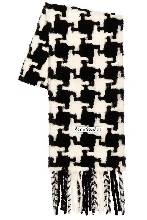 Acne Studios Vadik Scarf in Black,White 90% alpaca 10% nylon. Made in Italy. Dry clean only. Small logo patch at end. Fringe trim. Midweight knit. Measures approx 10W x 78L. ACNE-WA123. CA0153. About the designer: Acne Studios is a Stockholm-based fashion house with a multidisciplinary approach. Thr...more