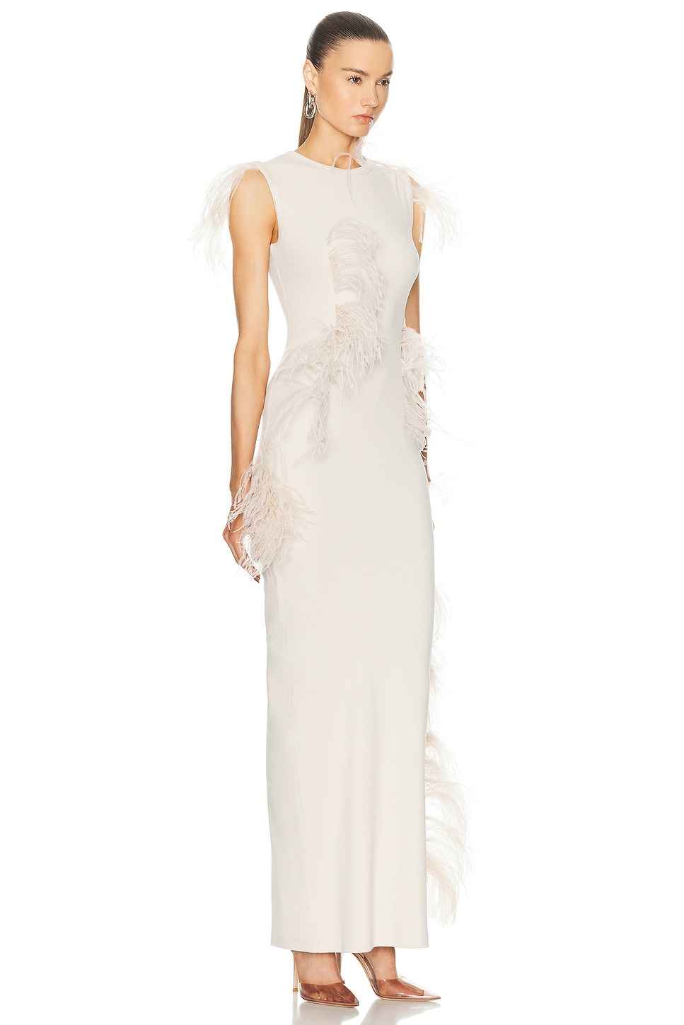 Acne Studios Feather Detail Dress in White Self 1: 96% cotton 4% elastane Self 2: 100% ostrich feathers. Made in Portugal. Dry clean only. Unlined. Pull-on styling. Feather accent design with back slit. Ribbed fabric. ACNE-WD242. A20685. About the designer: Acne Studios is a Stockholm-based fashion ...more