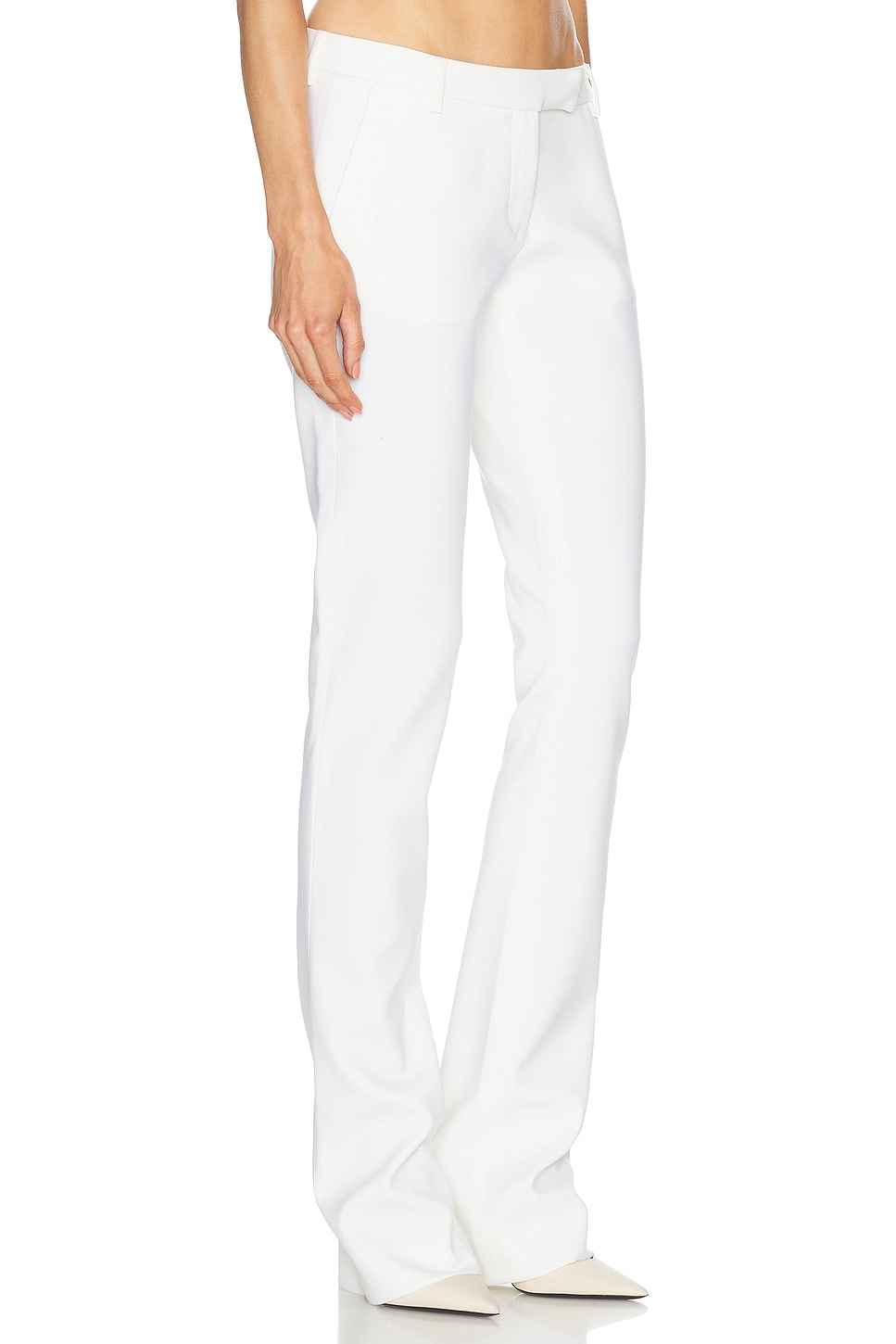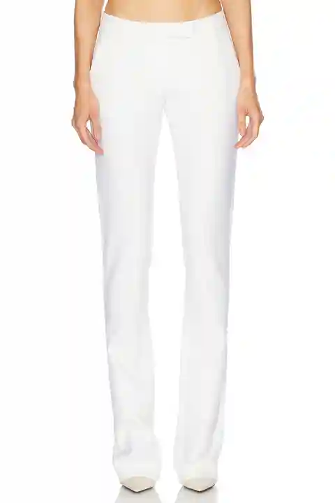 Acne Studios Pluffy Structured Trouser in White Self: 98% wool 2% elastane Lining: 64% viscose 36% polyester Contrast Fabric: 52% cotton 43% viscose 5% elastane. Made in Portugal. Dry clean only. Zip fly with hook and bar closure. 4-pocket styling. Crepe fabric. ACNE-WP200. AK0836. About the designe...more