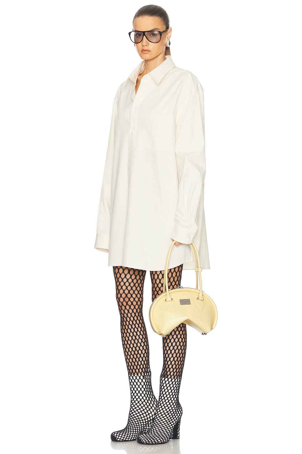 Acne Studios Bowlina Small Bag in Yellow Leather exterior with lamb leather lining. Made in Italy. Dual top zipper closures. One main compartment. Interior zipper pocket. Arched shape. Measures approx 13.78 W x 11.42 H x 5.51 D Shoulder strap with a 8 drop. ACNE-WY108. A10420. About the designer: Ac...more