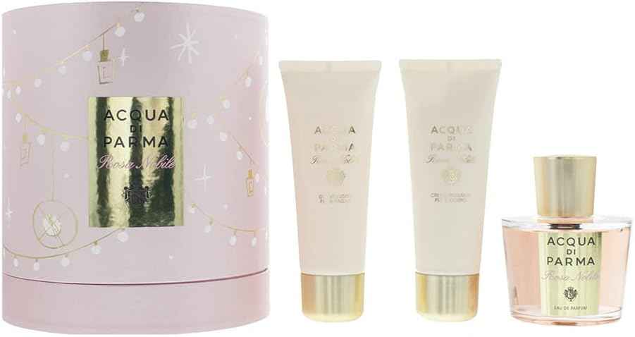 Acqua Di Parma's Rosa Nobile Deluxe Gift Set For Women envelops the senses in the timeless beauty of rose. This exquisite collection delivers the pure and captivating essence of Bulgarian rose, enhanced with vibrant notes of Sicilian mandarin, neroli, and Calabrian bergamot.Experience full-body luxu...more