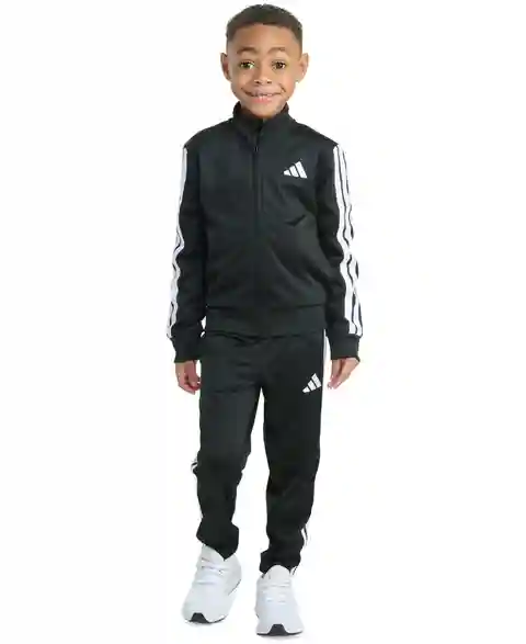 Add a touch of athletic style to their everyday look with this adidas outfit. This two-piece set includes a track jacket and matching pants. Iconic details like 3-Stripes and the signature sheen of tricot stay true to adidas roots.