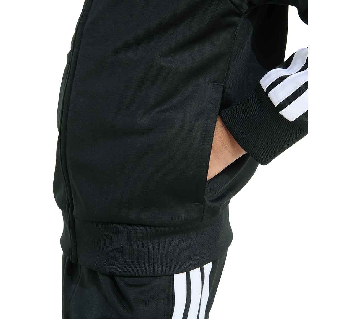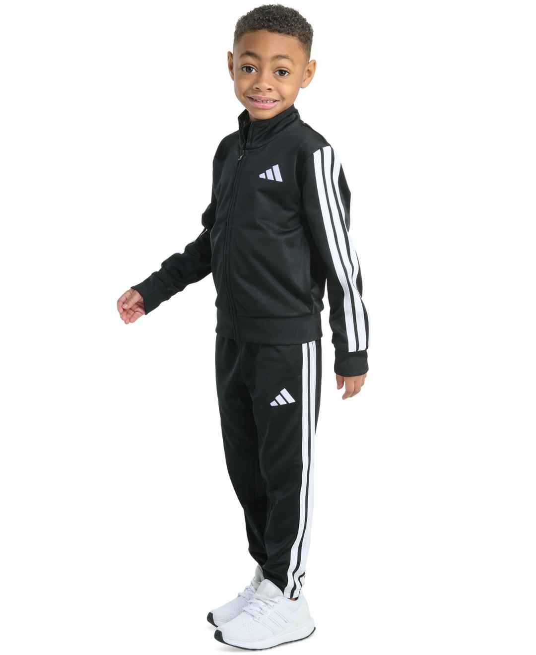 adidas Toddler & Little Boys Tricot Long-Sleeve Essential 3-Stripe Track Jacket & Pants, 2 Piece Set - Black