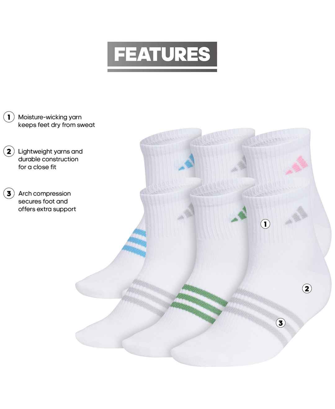adidas Women's 6-Pk. Superlite 3.0 Quarter Socks - Grey/Yellow/Blue Dawn