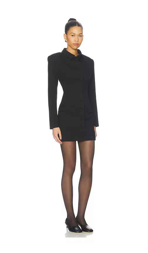 AEXAE Wool Contoured Collar Mini Dress in Black. - size S (also in L, M, XS)