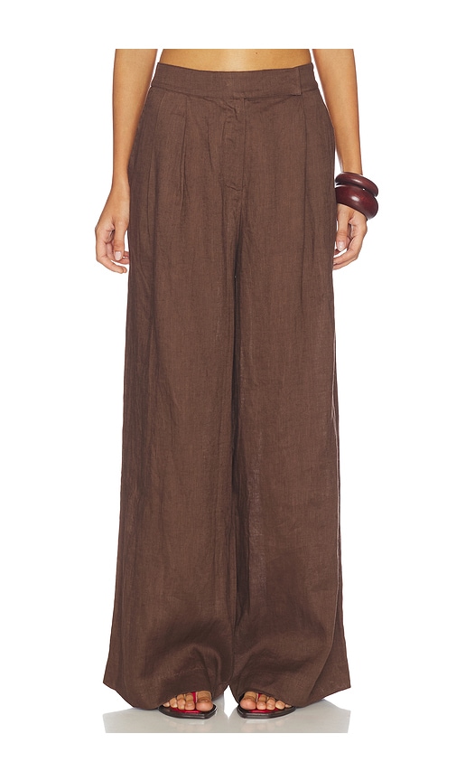 AEXAE Linen Palazzo Trouser in Brown. - size M (also in S) AEXAE Linen Palazzo Trouser in Brown. - size M (also in S) 100% linen. Made in China. Hand wash cold. Zip fly with hook and bar closure. Lightweight linen fabric. 28 at the leg opening. AEXR-WP24. BON084727.