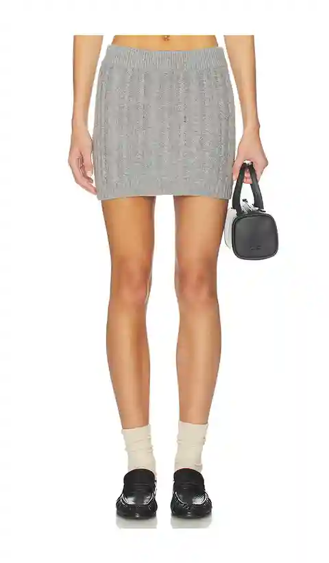 AEXAE Cashmere Cable Mini Skirt in Grey. - size L (also in M, S, XS) AEXAE Cashmere Cable Mini Skirt in Grey. - size L (also in M, S, XS) 50% cashmere 50% wool. Made in China. Hand wash. Unlined. Pull-on styling Elastic waistband. Midweight cable-knit textile. Ribbed trims. Skirt measures approx 14 ...more