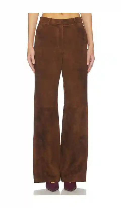 AEXAE Leather Suede Straight Leg Pant in Brown. - size L (also in M, S) AEXAE Leather Suede Straight Leg Pant in Brown. - size L (also in M, S) Self: 100% lambskin leather Lining: 100% viscose. Made in China. Dry clean only. Straight zip fly and snap button closure. Midweight suede fabric. Side seam...more