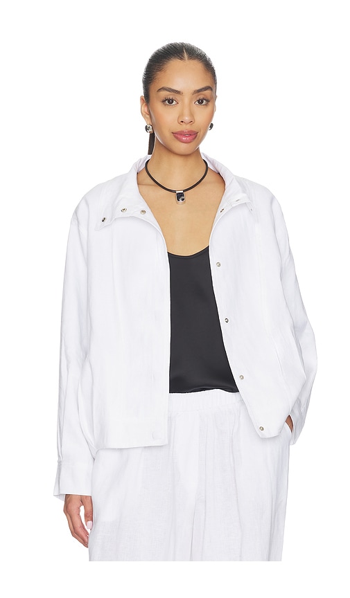 AEXAE Linen Bomber Jacket in White. - size M (also in S) AEXAE Linen Bomber Jacket in White. - size M (also in S) 100% linen. Made in China. Hand wash. Front-snapbutton closures with interior waist-belt with snapbutton closures. Slant-pockets. Midweight linen textile. Oversized fit. Item not sold as...more
