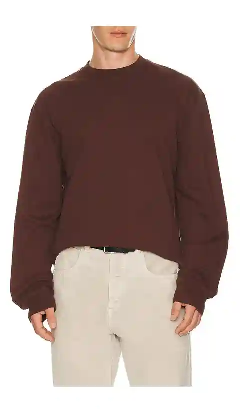 AGOLDE Long Sleeve Asha Tee in Chocolate. - size L (also in M, S) AGOLDE Long Sleeve Asha Tee in Chocolate. - size L (also in M, S) 100% cotton. Made in USA. Machine wash. Jersey textile. AGOF-MS34. A1038-1521.