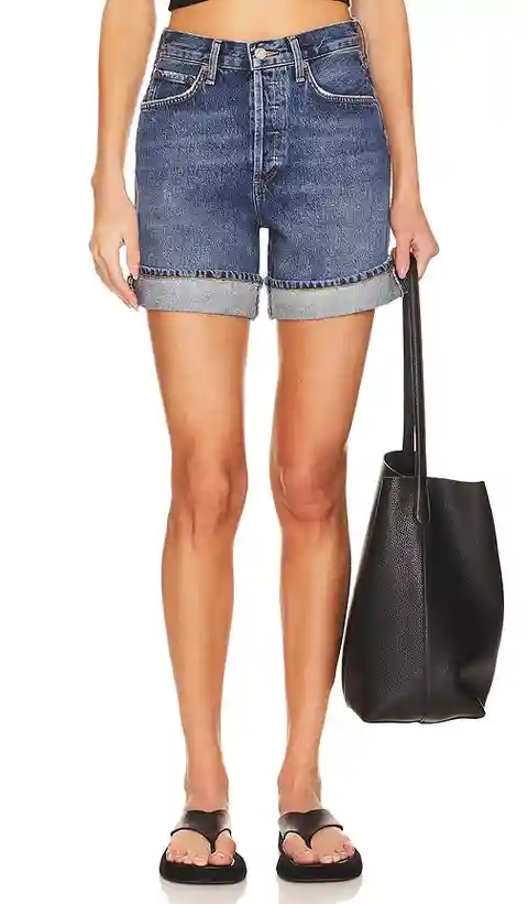 AGOLDE Dame Short in Denim-Medium. - size 23 (also in 24, 30, 31, 32, 33) AGOLDE Dame Short in Denim-Medium. - size 23 (also in 24, 30, 31, 32, 33) Crafted from rigid, regenerative cotton denim, these shorts boast the ideal vintage blue hue achieved through fading. The relaxed fit and mid-length hem...more