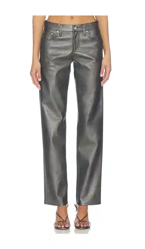 AGOLDE Low Rise Slim Pants in Metallic Silver, grey. - size 23 (also in 24, 25, 26, 27, 28, 30, 32, 33) AGOLDE Low Rise Slim Pants in Metallic Silver, grey. - size 23 (also in 24, 25, 26, 27, 28, 30, 32, 33) Self: 50% recycled leather 30% polyurethane 10% polyester 10% viscose. Made in Turkey. Dry c...more