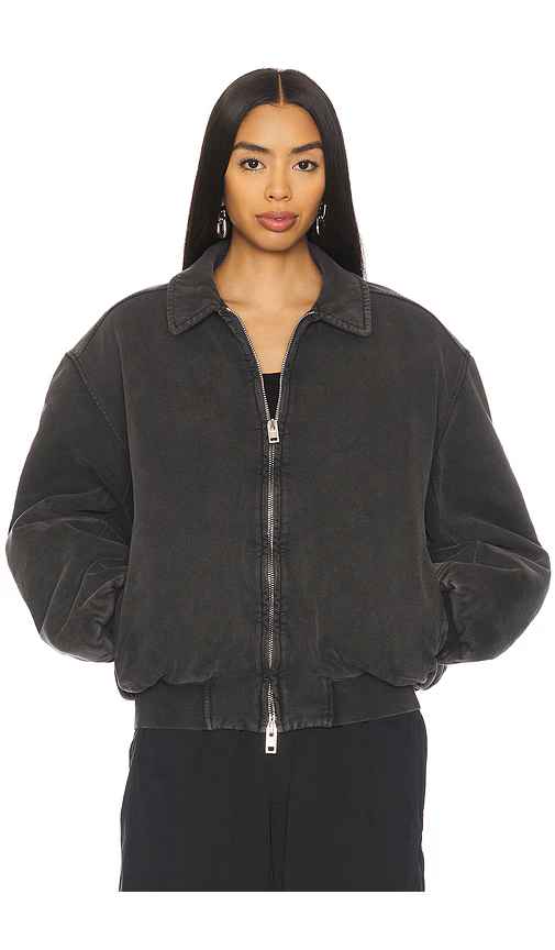Alexander Wang Moto Jacket in Grey. - size M (also in S, XS) Alexander Wang Moto Jacket in Grey. - size M (also in S, XS) Self: 100% cotton Trim: 99% cotton 1% elastane. Made in Portugal. Dry clean only. Front zipper closure. Side seam pockets. Quilted lining. Ribbed cuffs and hem. Heavy weight. AWA...more