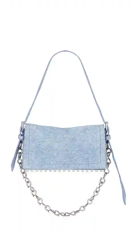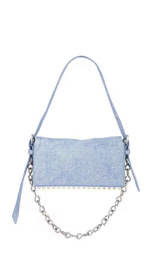 Alexander Wang Ricco Crushed Slim Flap Bag in Blue. Alexander Wang Ricco Crushed Slim Flap Bag in Blue. 100% goatskin leather denim printed exterior with polyester lining. Imported. Hidden magnetic flap closure. One main compartment. One interior zipper pocket and one interior card slot pocket. Meta...more