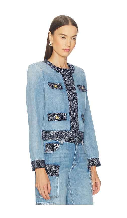 Alice + Olivia Landon Cropped Denim Jacket in Blue. - size L (also in M, S, XL) Alice + Olivia Landon Cropped Denim Jacket in Blue. - size L (also in M, S, XL) Self: 100% Cotton Lining 100% Recycled Polyester. Professional Dry Clean Only. Front inside hooks closure. ALI-WO271. CD508101221. Launched...more