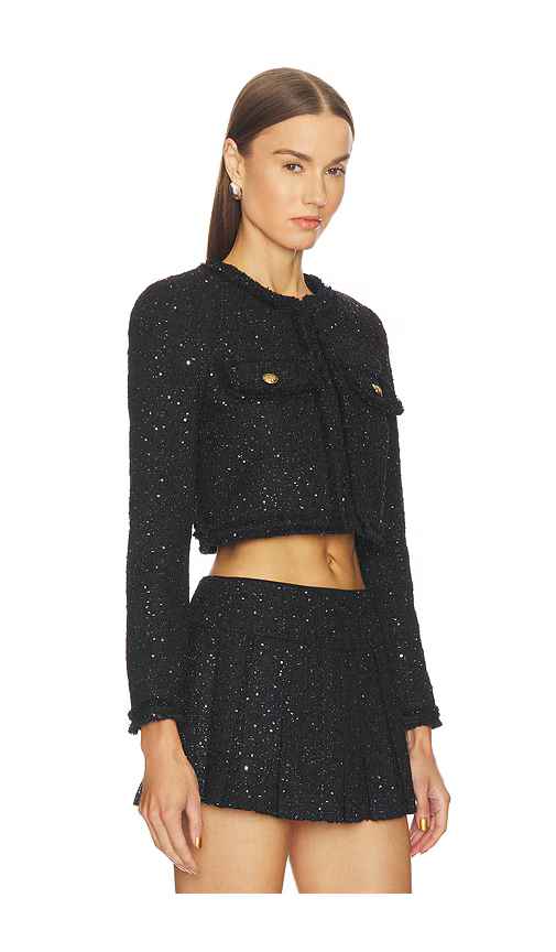 Alice + Olivia Dumont Tweed Boxy Jacket in Black. - size 10 (also in 4, 6, 8) Alice + Olivia Dumont Tweed Boxy Jacket in Black. - size 10 (also in 4, 6, 8) Self: 100% polyester Lining: 100% recycled polyester. Dry clean only. Front hook and bar closure. Breast button pockets. Padded shoulders. Cropp...more