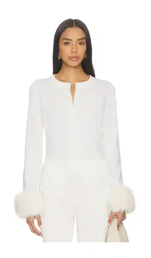 Home alice and olivia Alice + Olivia Dollie Faux Fur Cuff Cardigan in White. - size L (also in M, S, XL, XS)