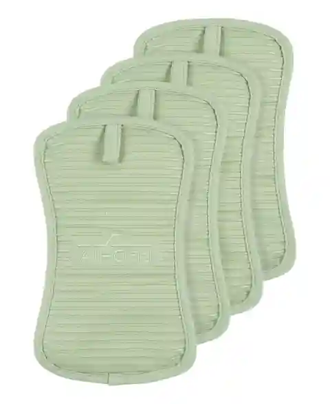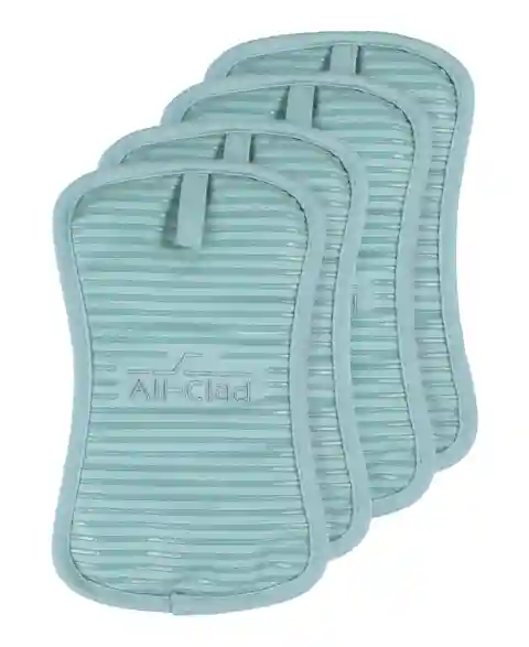 All-Clad Ribbed Silicone Cotton Twill Potholders, Set of 4 - Fennel