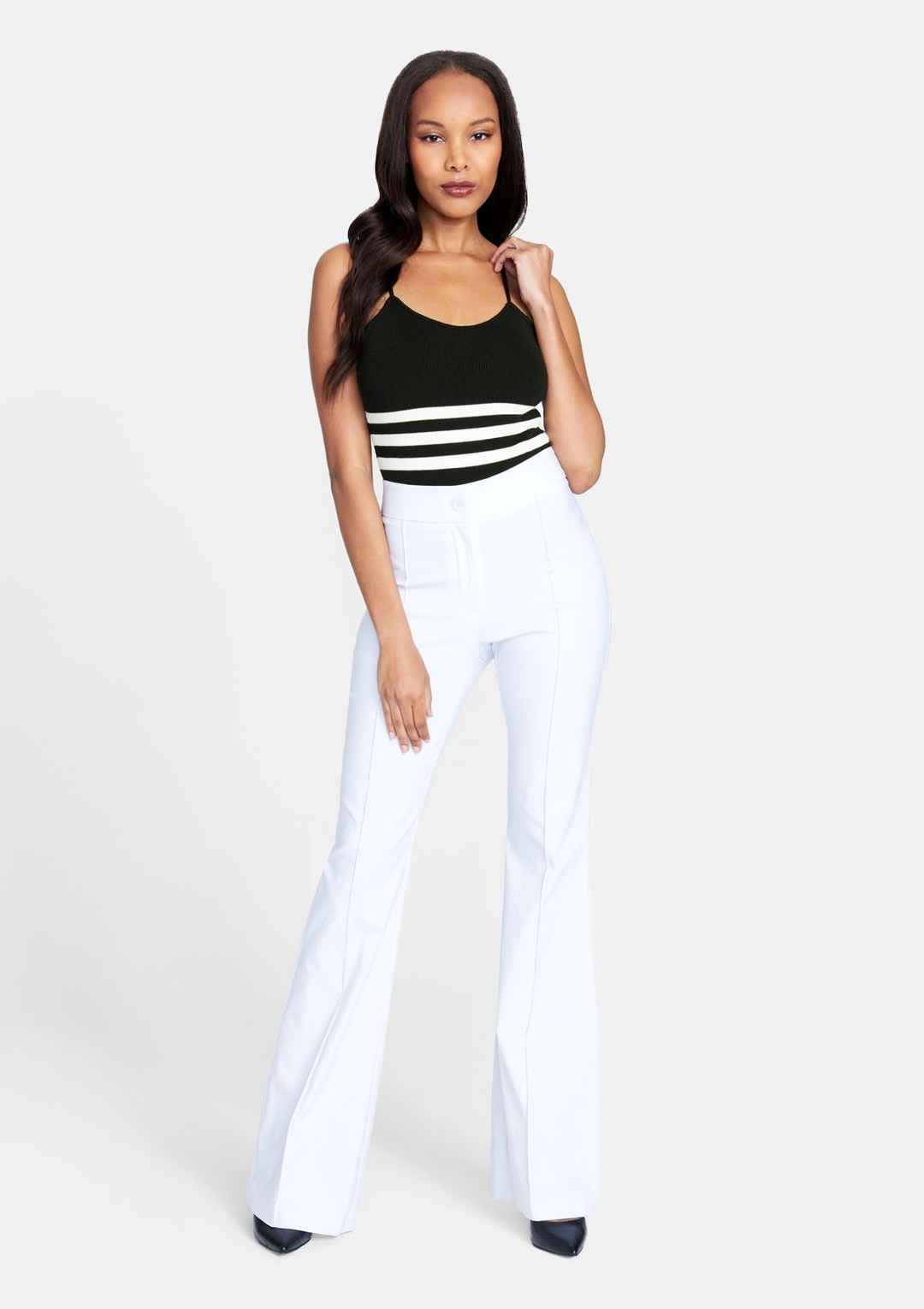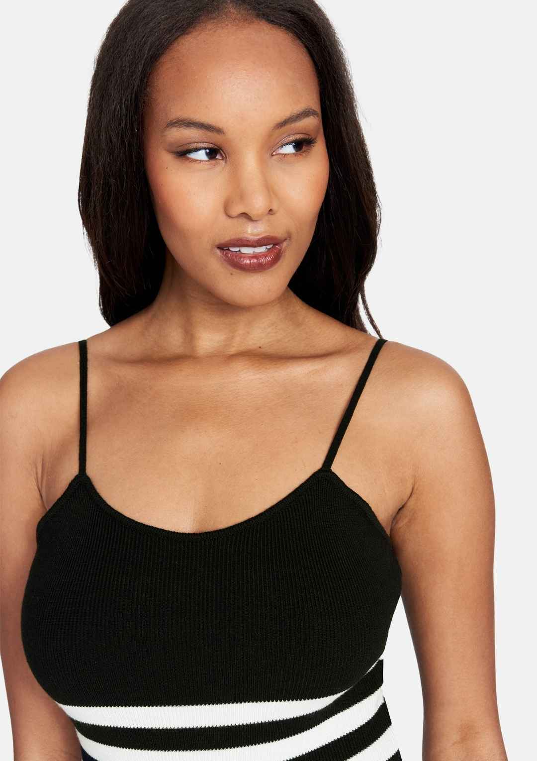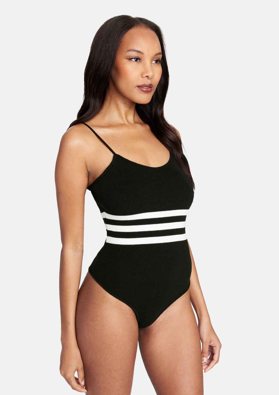 The Lauren bodysuit adorns a sweetheart neckline contouring the bodice. Featuring a striped design, soft knit material, and adjustable straps. This bodysuit makes putting together an OOTD effortlessly chic. | Alloy Apparel Tall Lauren Bodysuit for Women in Black Size Small | PU/Synthetic
