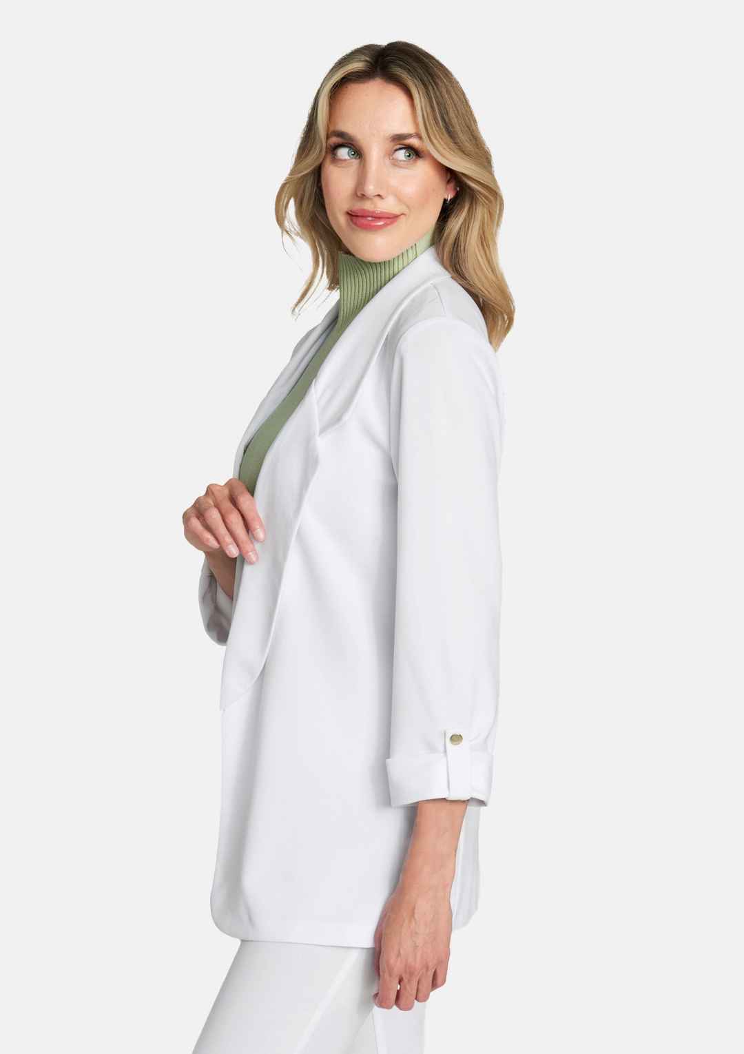 Say goodbye to stiff & heavy blazers! A softly tailored open blazer with rolled up sleeves, made from a lightweight fabric. The Anabella is perfect for sprucing up any outfit. Pair it with the Tall Anabella Flare Pants for a coordinated look! | Alloy Apparel Tall Anabella Blazer for Women in White S...more