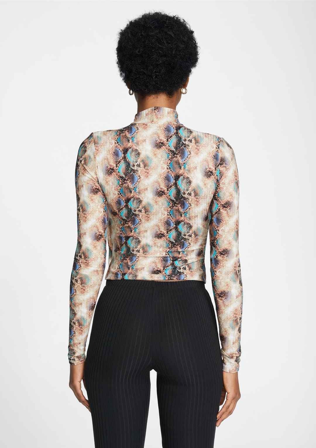 Home Alloy Apparel Alloy Apparel Tall Elana Keyhole Long Sleeve Top for Women in Coco Snake Size Small
