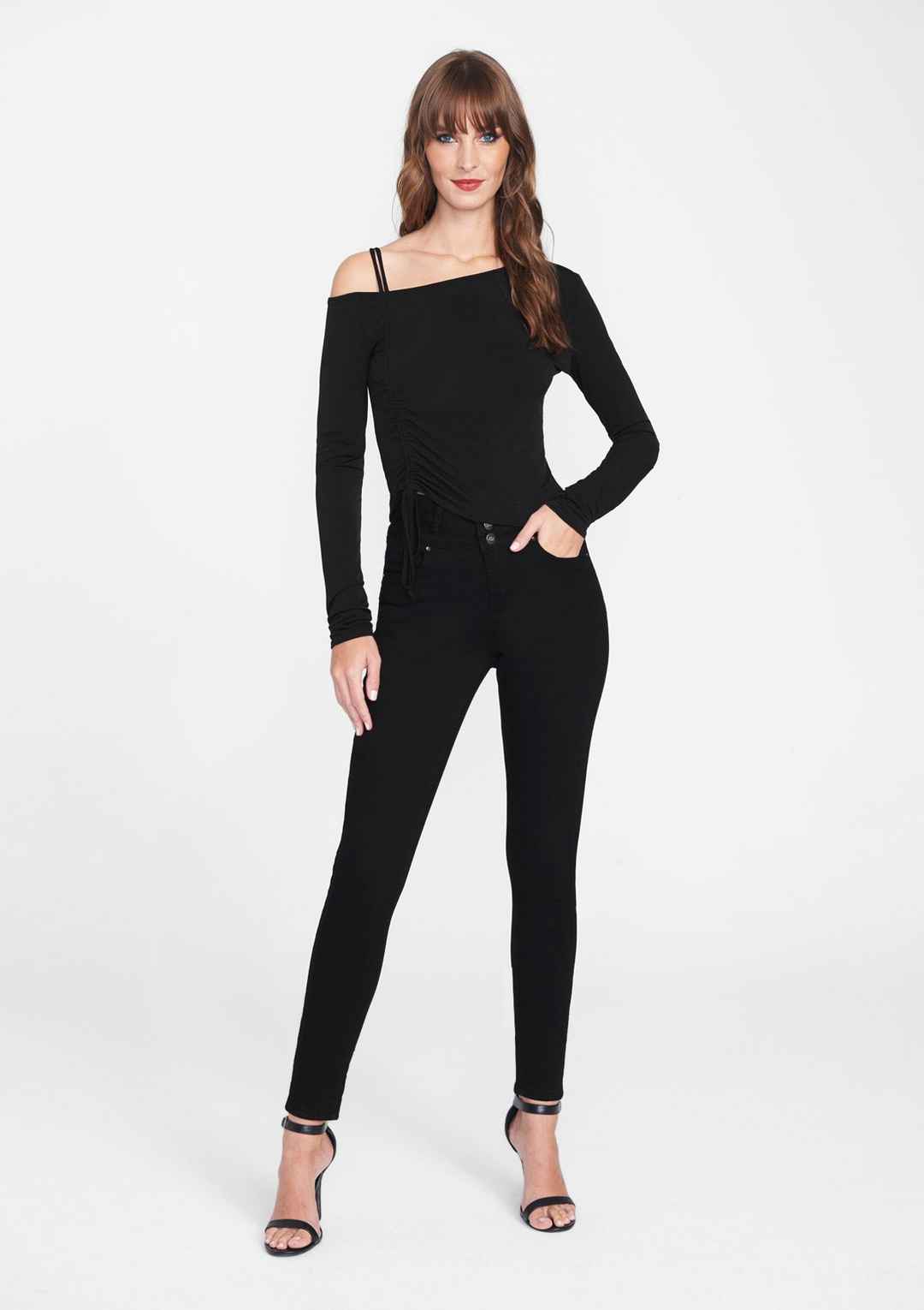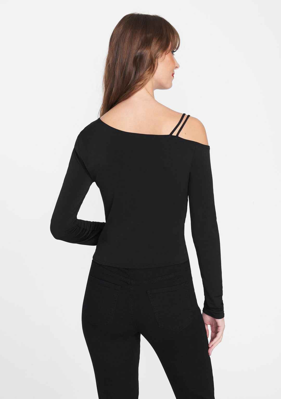 The Cara crop top features a one shoulder silhouette with an asymetrical scrunch detail. Flattering and flirty, perfect for any occasion. | Alloy Apparel Tall Cara One Shoulder Top for Women in Black Size Small