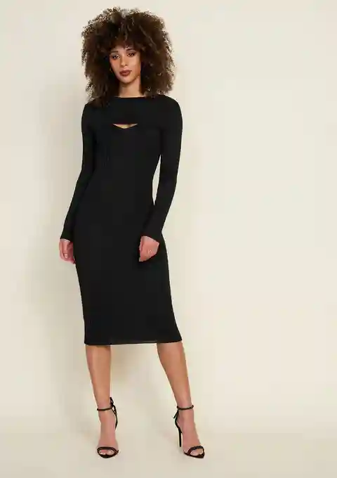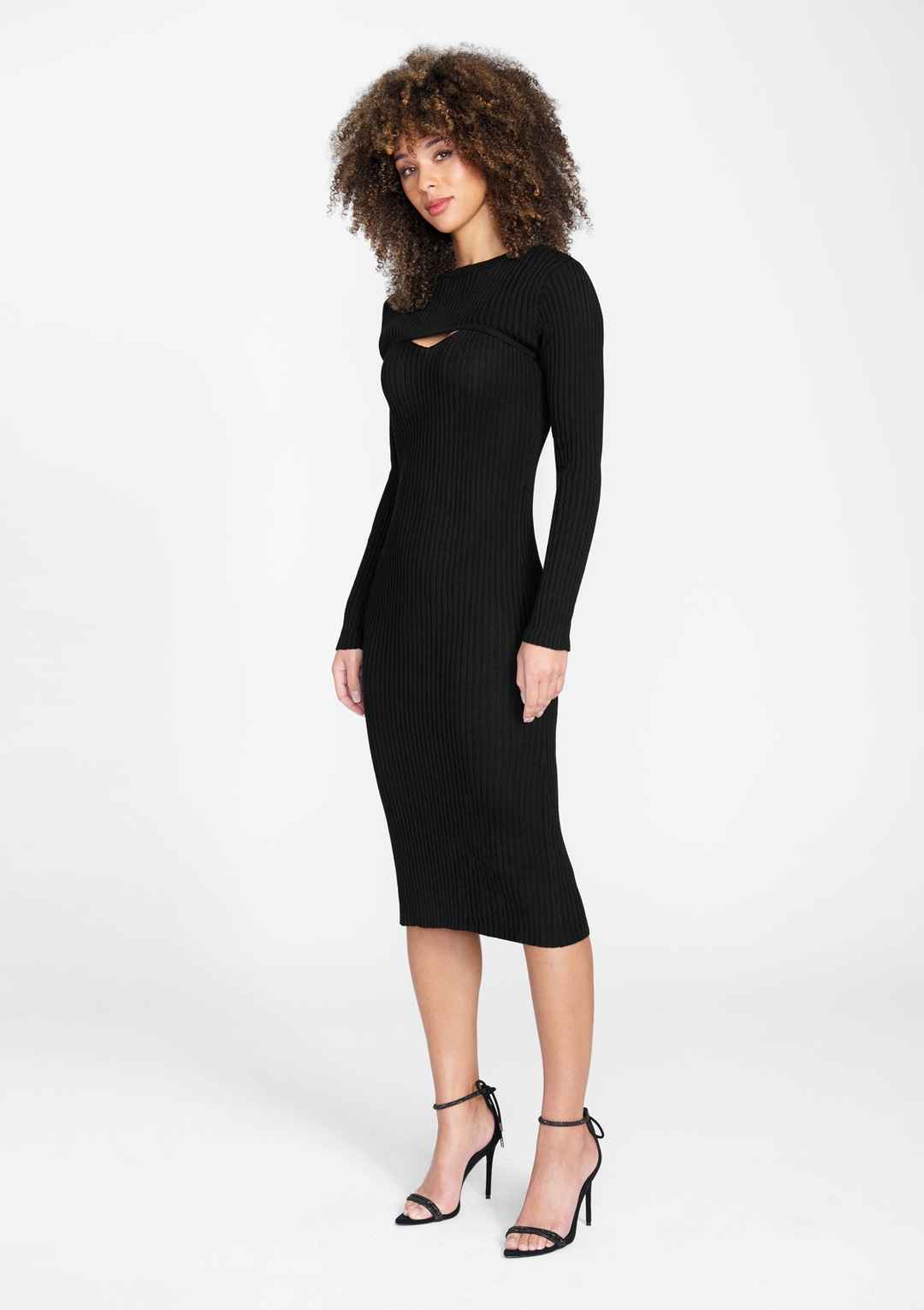 Alloy Apparel Tall Alexa Knit Midi Dress for Women in Black Size Large