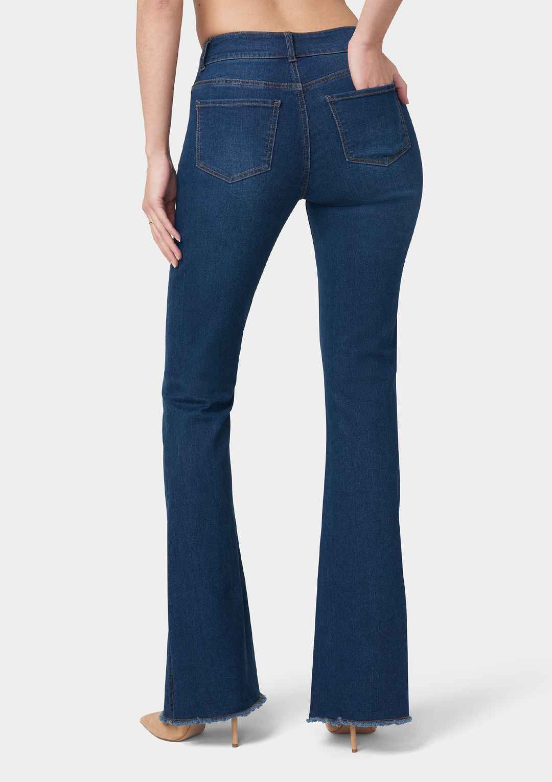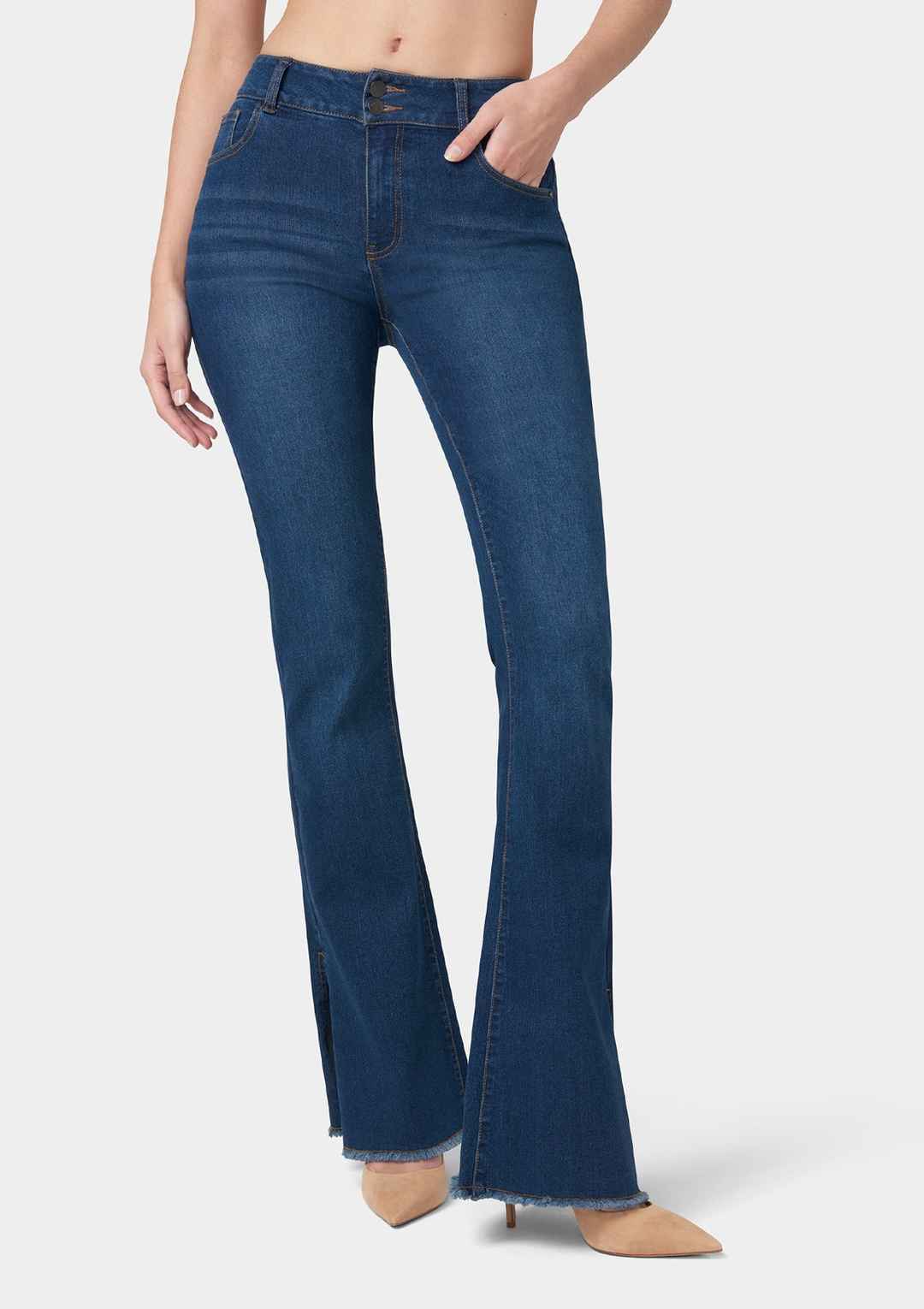 Our Olivia Flare Jeans are a chic embodiment of classic style mixed with a modern twist, boasting a classic 5-pocket design and eye-catching side slits on both legs. The flare silhouette adds a touch of drama, perfect for a polished look with pumps or casual flair with ankle boots. | Alloy Apparel T...more