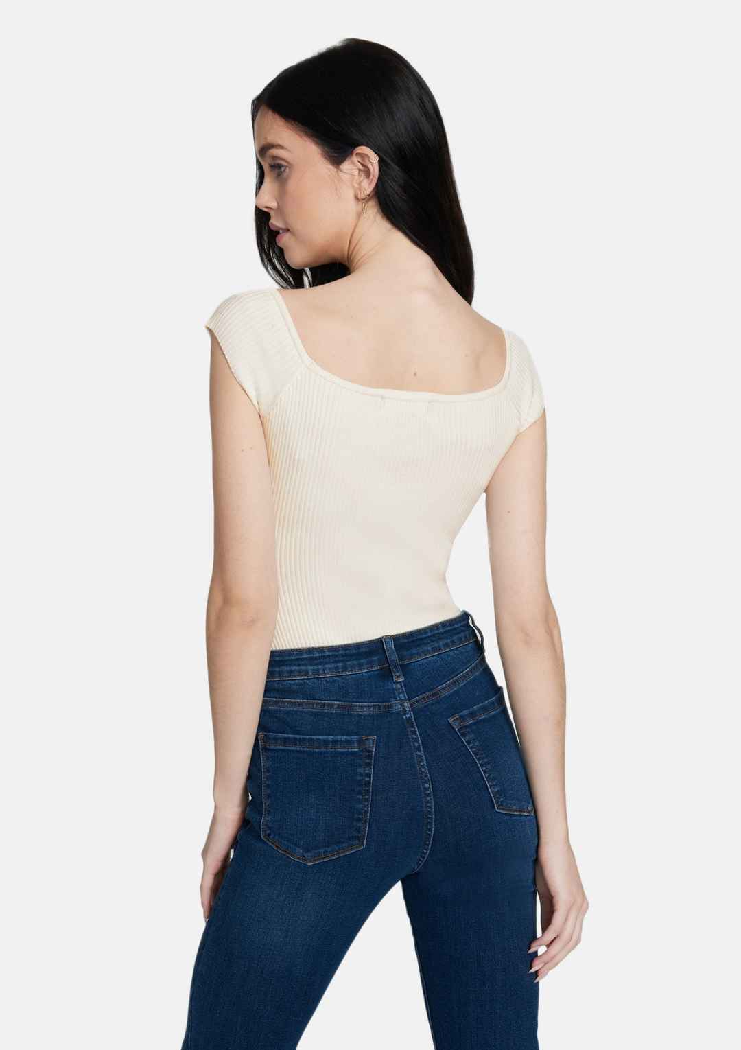 The Kim button-front bodysuit features a stunning ribbed knit construction, short sleeves, and snap button closure at the hem. Bringing an easy-to-layer style to your wardrobe. | Alloy Apparel Tall Kim Ribbed Bodysuit for Women in White Size Small