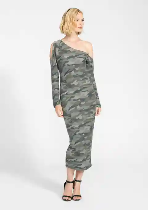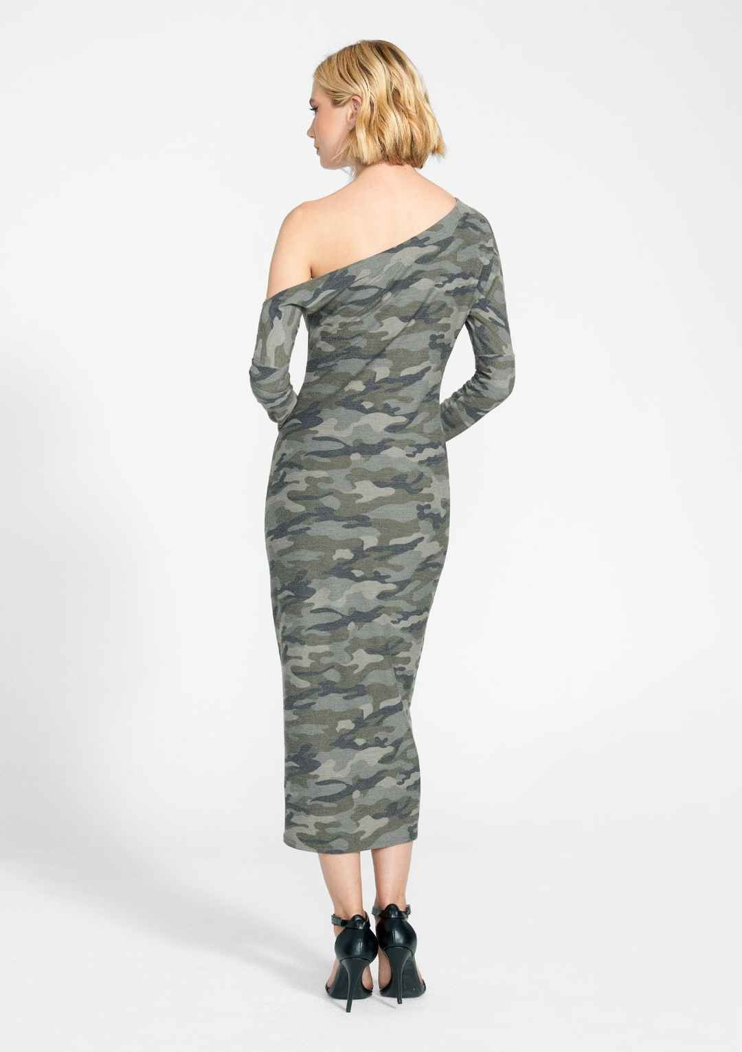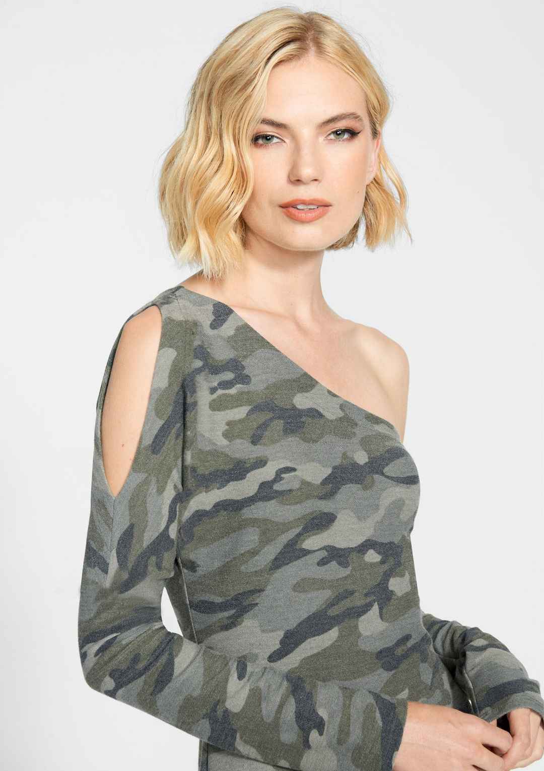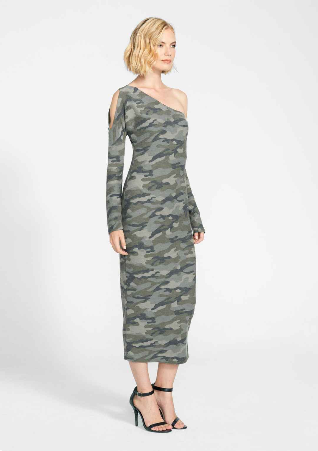 The Alani one shoulder midi dress features a sexy cold shoulder detail, giving this classy silhouette an extra edge. | Alloy Apparel Tall Alani One Shoulder Dress for Women in Camo Rust Print Size Small