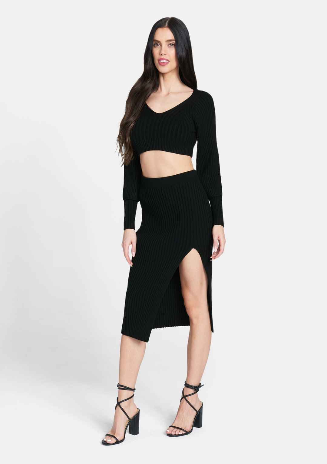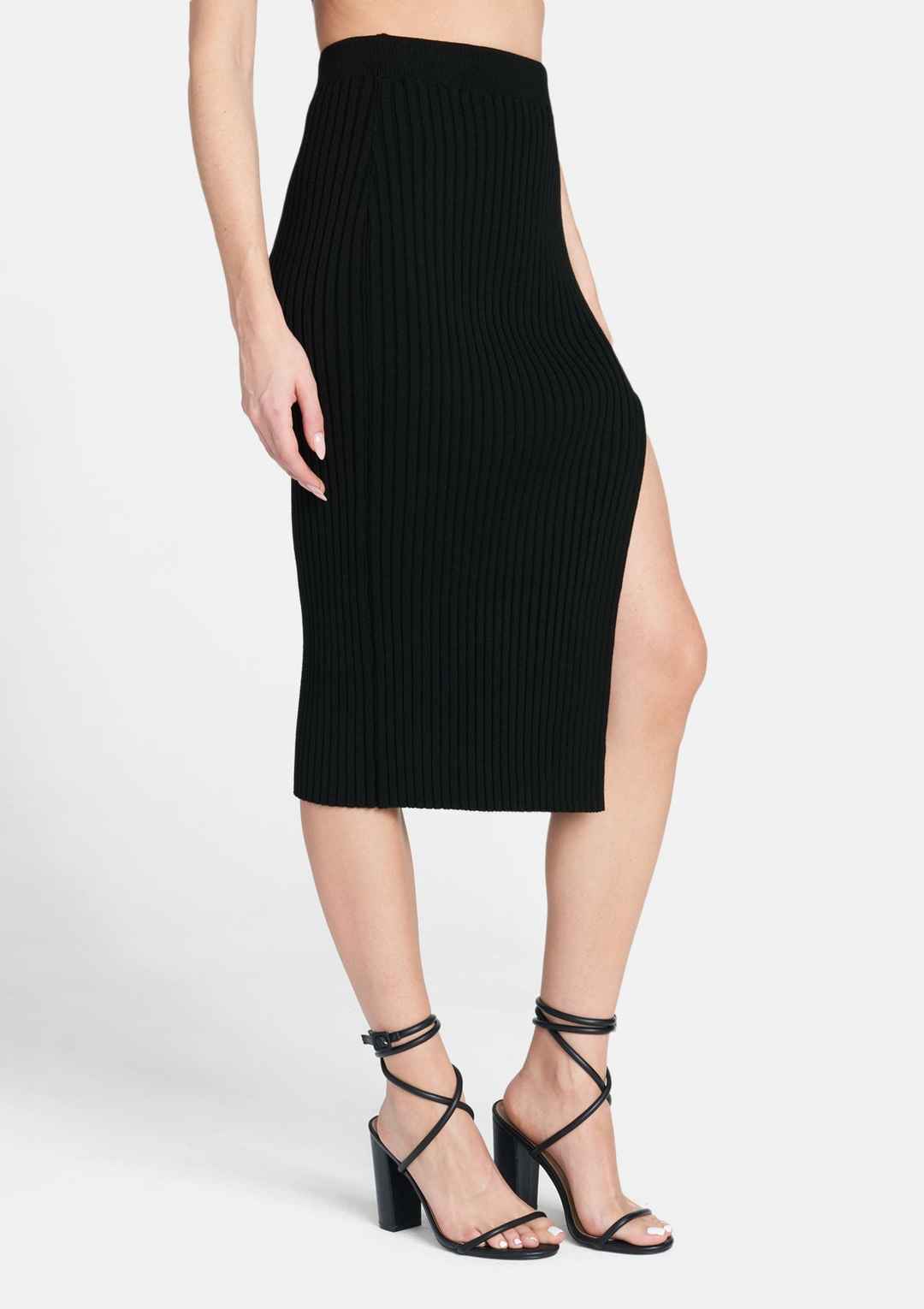 The Kaylee features a soft and stretchy rib-knit that skims your figure in a pencil-style midi skirt with a stylish slit at the front for easy movement. Pair it with the Kaylee Knit Top for a polished look! | Alloy Apparel Tall Kaylee Knit Skirt for Women in Black Size Small