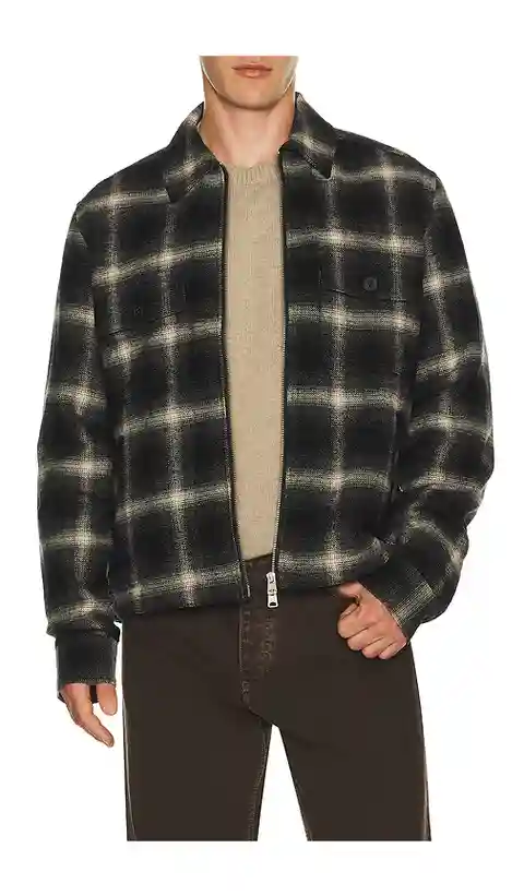 ALLSAINTS Bayo Sherpa Jacket in Black. - size M (also in XL/1X) ALLSAINTS Bayo Sherpa Jacket in Black. - size M (also in XL/1X) Self 1: 100% cotton Lining: 100% polyester. Dry clean only. Two-way front zip closure. Dual chest pockets. Buttoned cuffs. Midweight flannel with sherpa lining. ALLR-MO86. ...more
