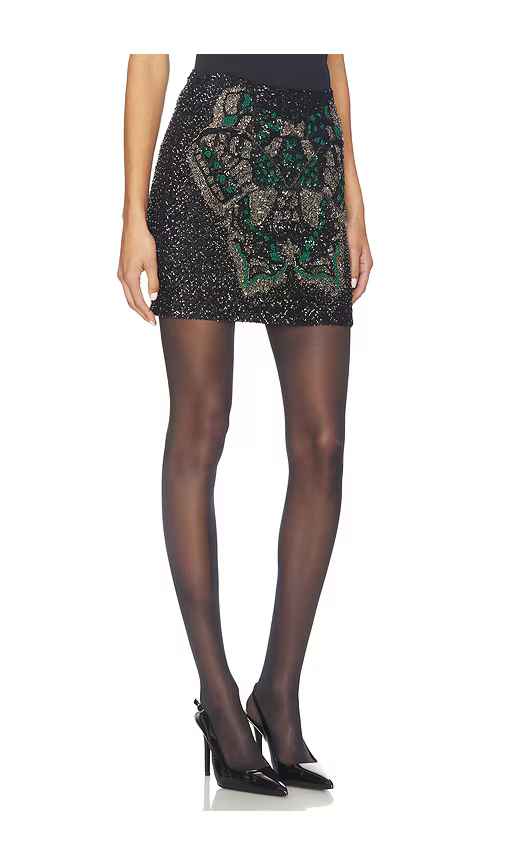 ALLSAINTS Jamilia Embellished Skirt in Black. - size 4 (also in 0, 10, 2, 6, 8) ALLSAINTS Jamilia Embellished Skirt in Black. - size 4 (also in 0, 10, 2, 6, 8) Self & Lining: 100% polyester. Made in India. Hand wash cold. Fully lined. Hidden side zip and eyelet closure. Sequin jersey fabric. Please ...more
