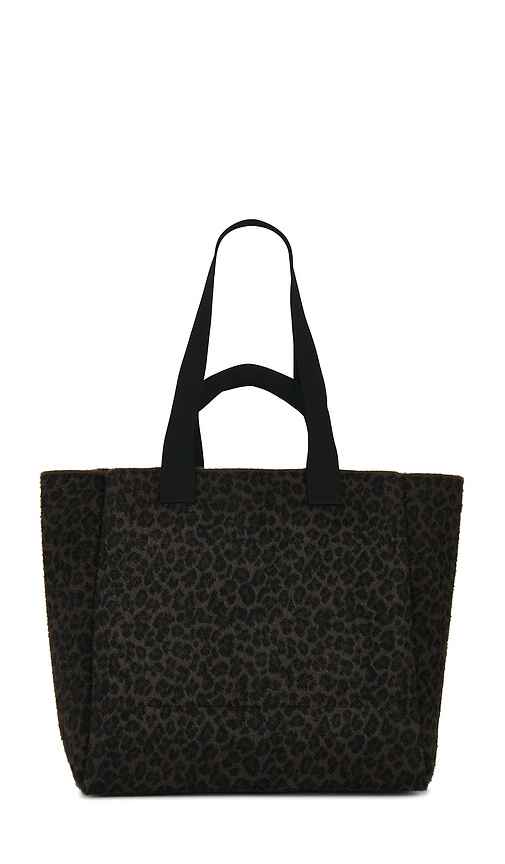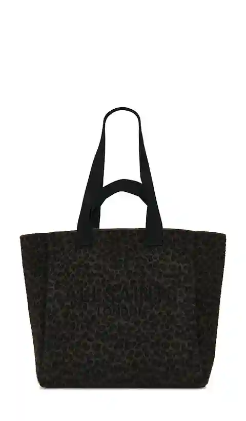ALLSAINTS Izzy Fzzy Tote in Brown. ALLSAINTS Izzy Fzzy Tote in Brown. Fuzzy leopard-print polyester exterior and lining. Imported. Open top design. One main compartment with interior back slip pocket. Twin handles for carry + longer shoulder strap option. Measures approx 15.4 W x 14.2 H x 7.5 D Shou...more