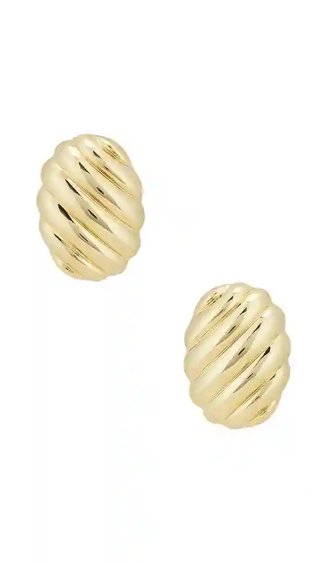 ANINE BING Ribbed Oval Earrings in Metallic Gold.