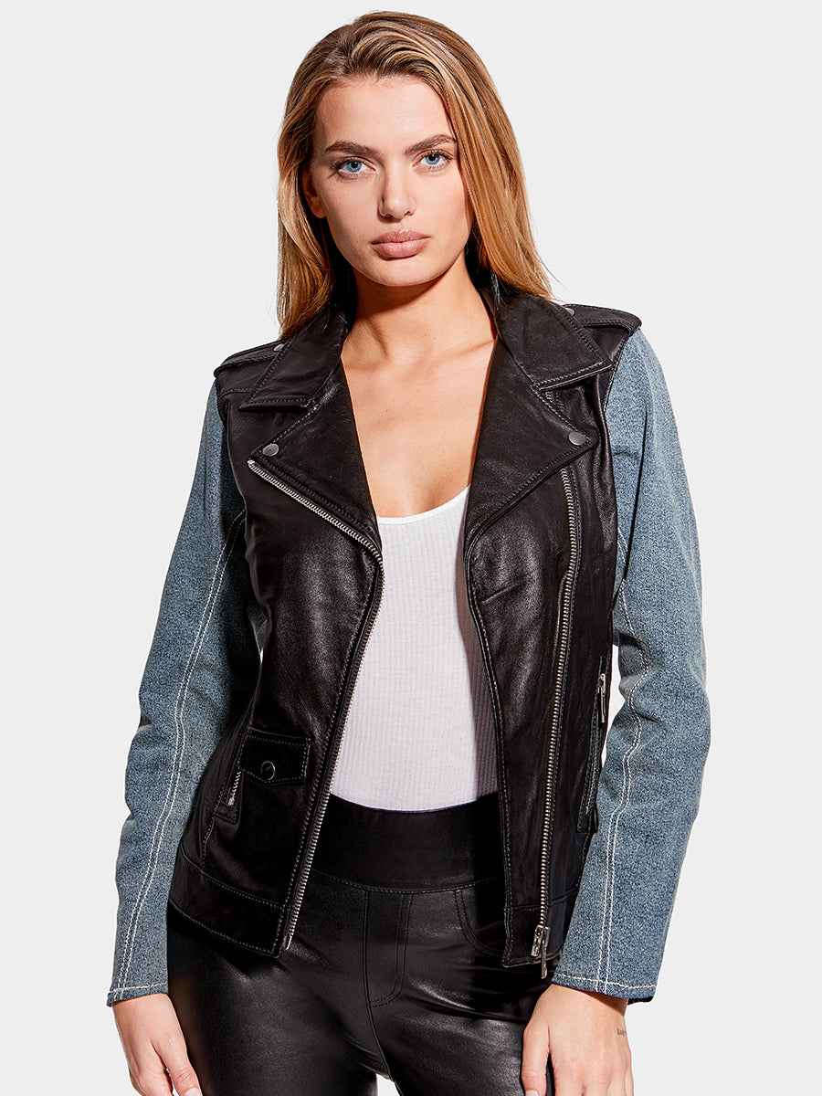 THE EDITOR LEATHER DENIM JACKET