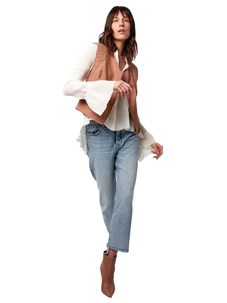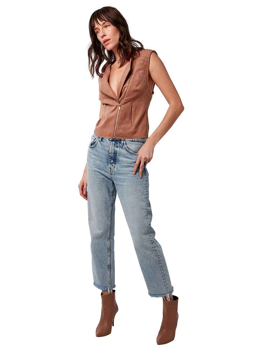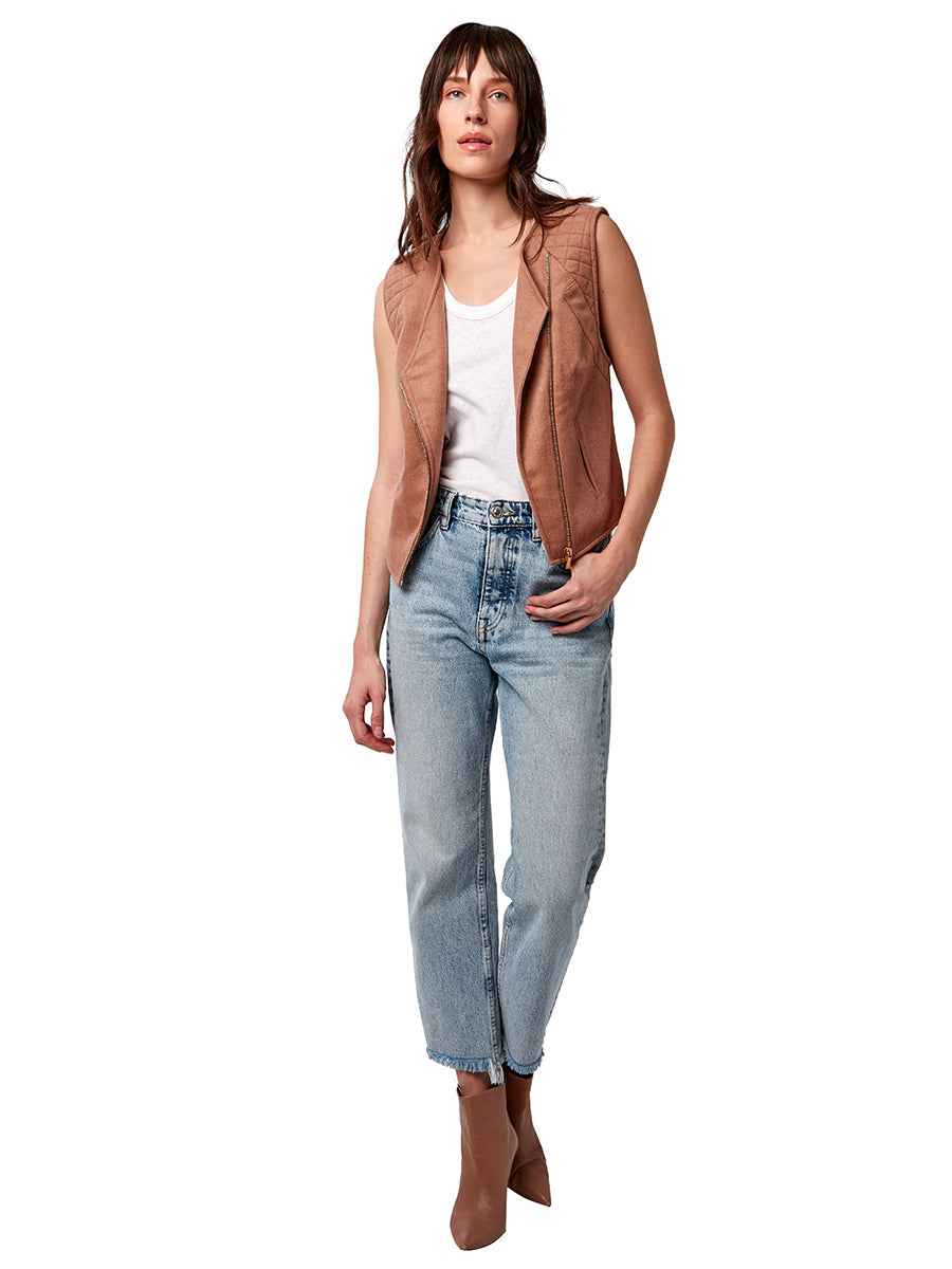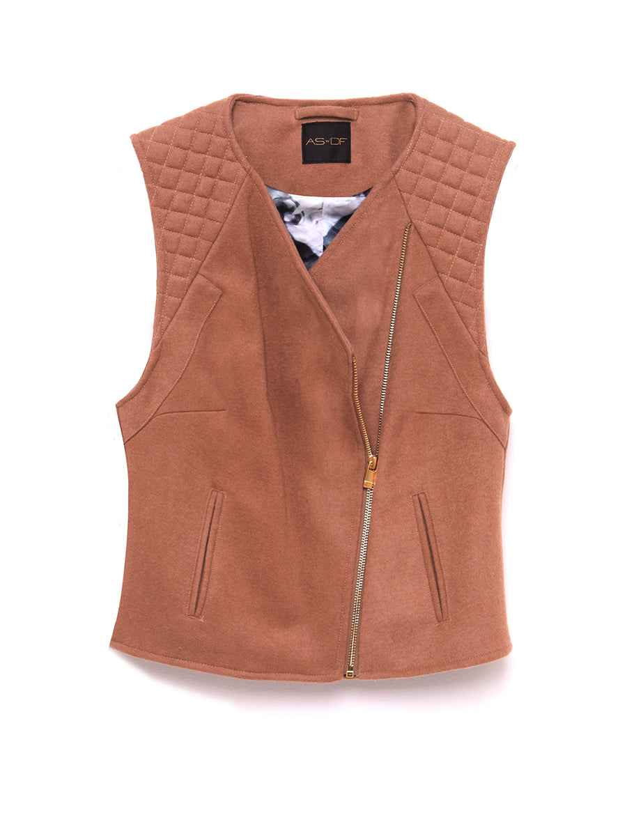 Cropped style slim fit vest Quilted stitch shoulder detail Asymmetrical front zipper detail Self : 86% Wool, 14% Cashmere L...more
