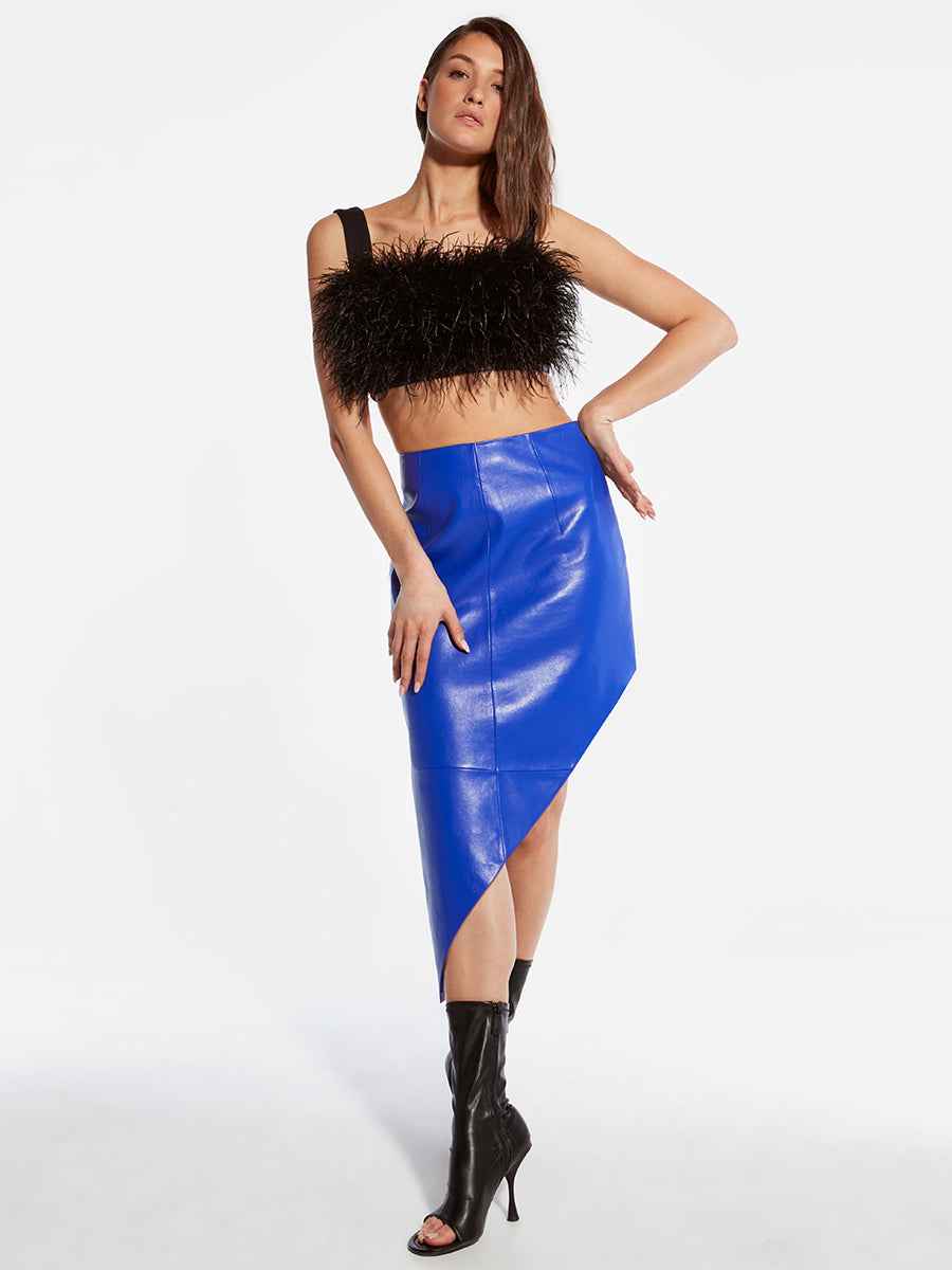 Youll be voted best dressed at the party in our Marianna Feather Top. This fun & flirty top is covered with sustainably sourced feathers that add movement & interest to your evening ensemble. Best of all, you wont have to sacrifice style for comfort with the wide str...