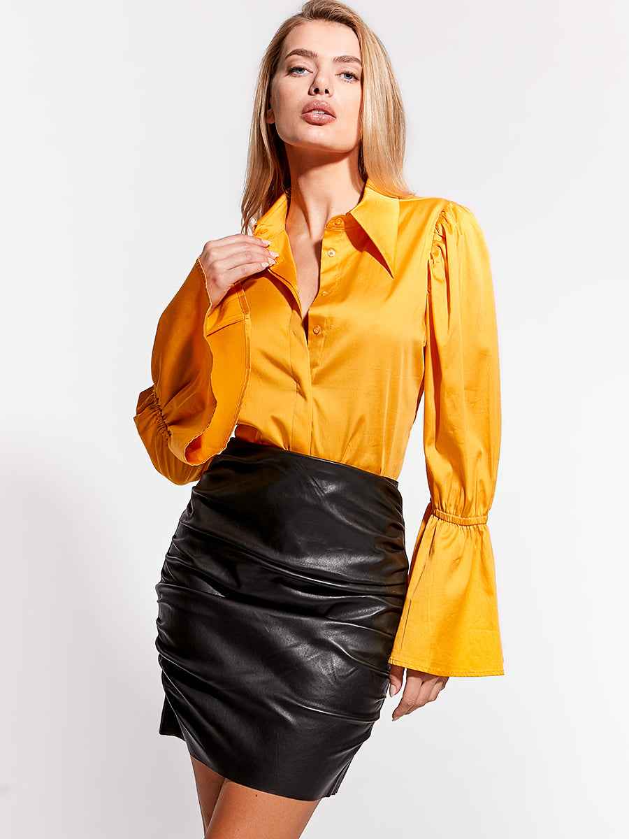 For your next soire, make our Everly Stretch Leather Skirt the starting point for your ensemble. Made from supple stretch lambskin leather, it's gathered along the sides and for an especially flattering finish. Pair yours with our Alba Blouse for an envy-inducing evening out...