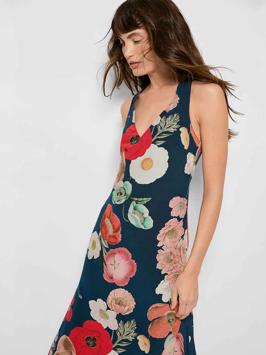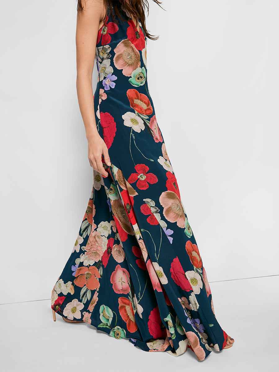 V-neck maxi dress Exclusive field of poppies print Invisible zipper closure at center back Self: 100% Sandwashed silk Lining : 100% Polyester crepe Fits true to size Dry clean only