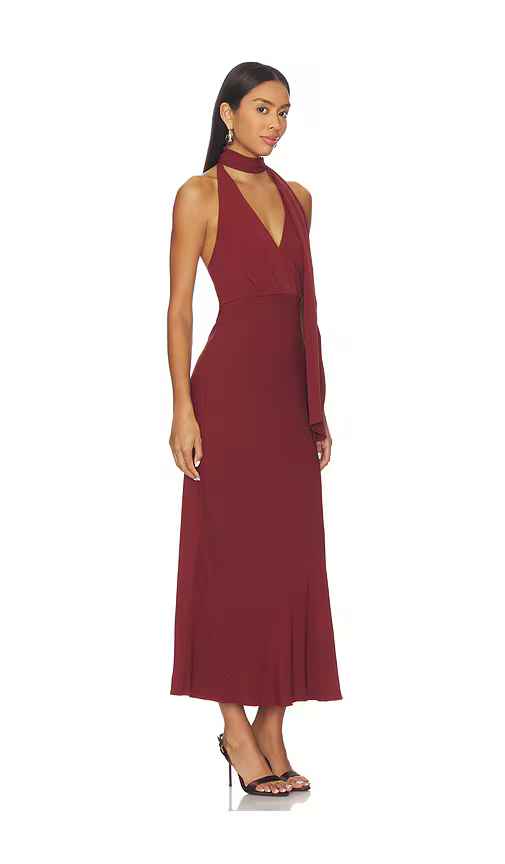 ASTR the Label Hilaire Dress in Brown. - size L (also in M, S, XL) ASTR the Label Hilaire Dress in Brown. - size L (also in M, S, XL) Self: 94% polyester 6% elastane Lining: 97% polyester 3% elastane. Dry clean only. Partially lined. Halterneck wrap-around tie closure Hidden side zipper closure. Ope...more