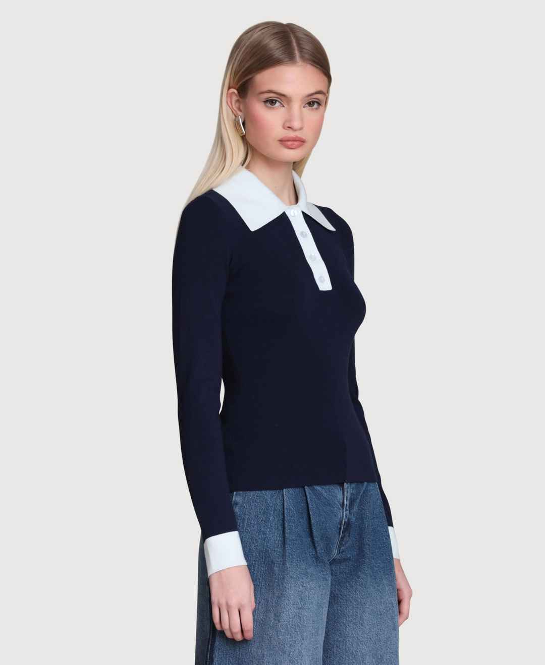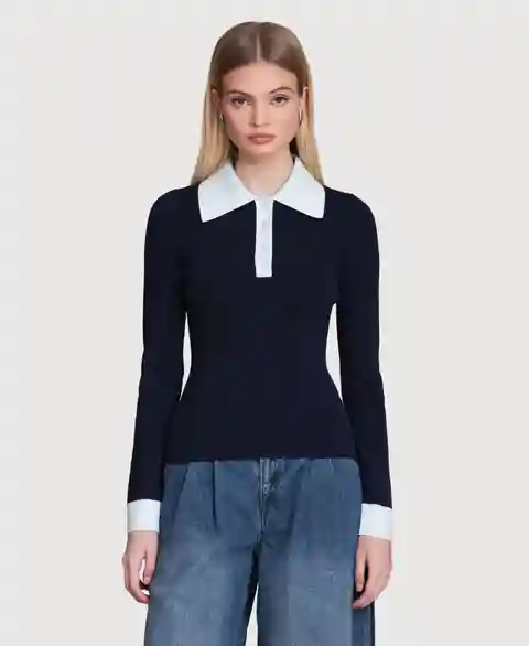 Offering a long-sleeve polo design, this Avec Les Filles sweater presents a classic, casual silhouette. The spread collar and pull-on style provide comfortable, versatile wear.
