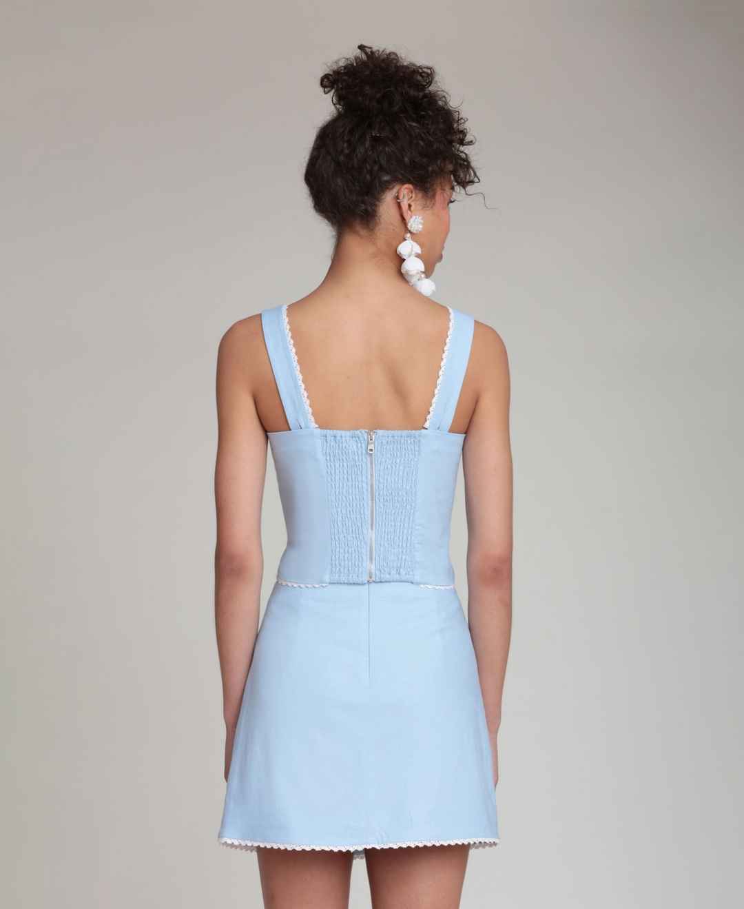 Structured elegance radiates with embroidered detailing and back zipper closure on this Avec Les Filles top with square neck styling and strap construction. The corset-inspired design brings flattering, structured appeal.