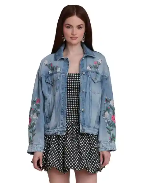 Avec Les Filles Women's Pleated Back Trucker Jacket - Felicity Wash