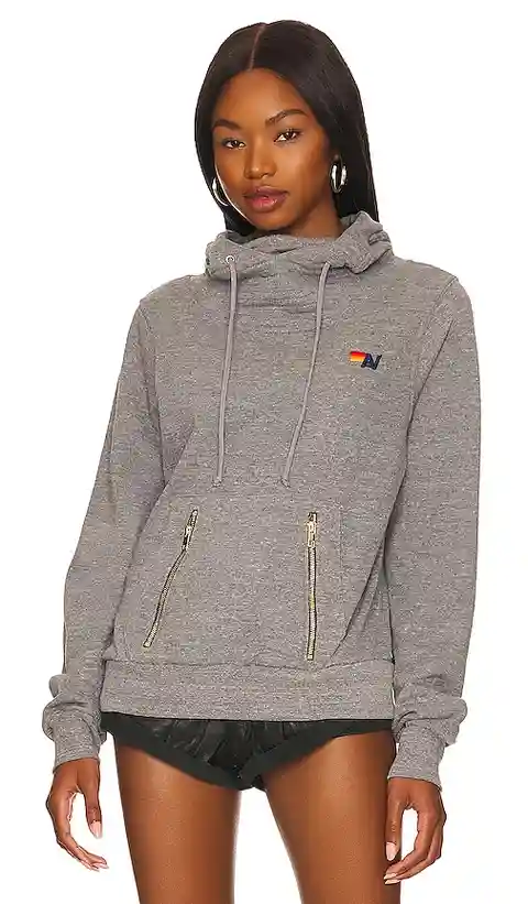 Aviator Nation Ninja Hoodie in Grey. - size S (also in XL, XS) Aviator Nation Ninja Hoodie in Grey. - size S (also in XL, XS) 50% polyester 38% cotton 12% rayon. Made in USA. Machine wash. Funnel neck with drawstring. Kangaroo pocket with zip closure. Brushed fleece with embroidered logo. ANAT-WK48....more